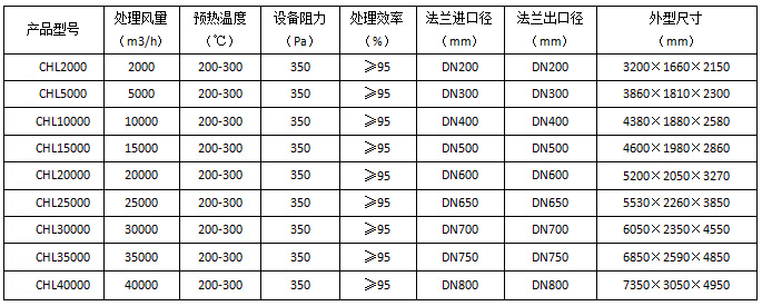 五、RCO催化燃燒處理設(shè)備型號(hào)及參數(shù)