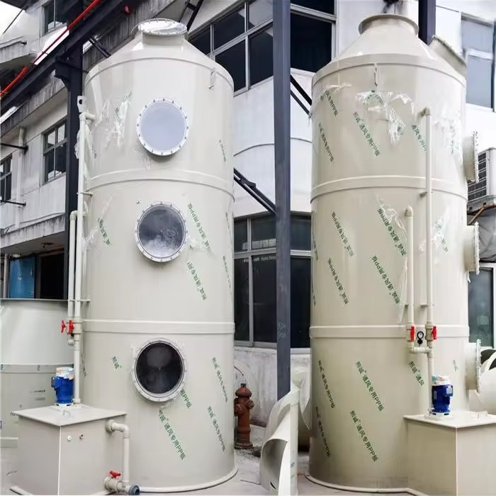 3.化學(xué)吸收劑從塔頂向下噴射,廢氣向上流動。廢氣與吸收液完全接觸,并通過反應(yīng)除去。